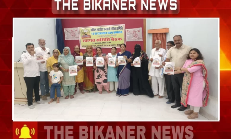 THE BIKANER NEWS. बीकानेर।स्थानीय नरेंद्र ऑडिटोरियम में अखिल भारतीय जनवादी महिला समिति के 1 से 3 अगस्त 2025 को बीकानेर में आयोजित होने वाले तीन दिवसीय प्रांतीय सम्मेलन के आयोजन हेतु बैठक में 35 सदस्य स्वागत समिति का गठन किया गया।