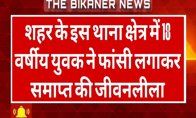 शहर के इस थाना क्षेत्र में 18 वर्षीय युवक ने फांसी लगाकर समाप्त की जीवनलीला