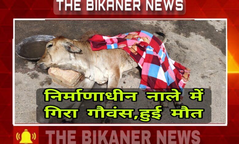 THE BIKANER NEWS:बीकानेर । शहर में खुले और टूटे नाले दे रहे है हादसों को न्योता, आये दिन इन नालों में गौवंस गिरकर होते है घायल, प्रसाशन नही दे रहा है ध्यान, कल मंगलवार को भी एक निर्माणाधीन नाले में एक गौवंस गिर गया जिसको काफी मशक्कत के बाद मोहल्ले वासियों ने निकाला,बाद में आज उसकी मौत हो गयी। जिसके बाद मोहल्ले वासियों ने आक्रोश जताया है,