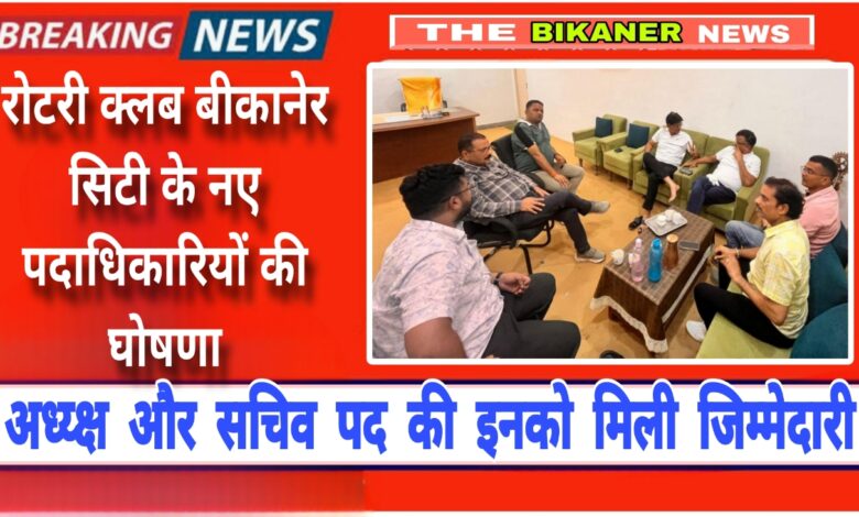रोटरी क्लब बीकानेर सिटी में नए पदाधिकारियों की घोषणा,पुरोहित बने अध्यक्ष,रीतेश पुरोहित को सचिव पद की जिम्मेदारी