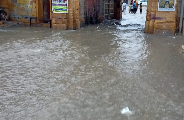 जैसलमेर( कैलाश बिस्सा) स्वर्णनगरी में प्रशासन कितना सतर्क है यह नजारा समुद्र से कम नहीं है ड्रेनेड के अभाव के चलते स्वर्णनगरी वाशिंदों को मौत का सामना भी करना पड़े तो संबंधित प्रशासन के क्या फर्क पड़ता है।