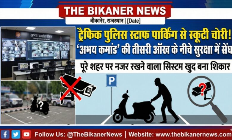 बीकानेर: पूरे शहर पर तीसरी आँख से नजर रखने वाली ‘अभय कमांड’ ट्रेफिक पुलिस स्टाफ पार्किंग से स्कूटी चोरी
