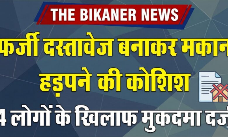 बीकानेर: फर्जी दस्तावेज बनाकर मकान हड़पने की कोशिश,4 लोगों के खिलाफ मुकदमा दर्ज