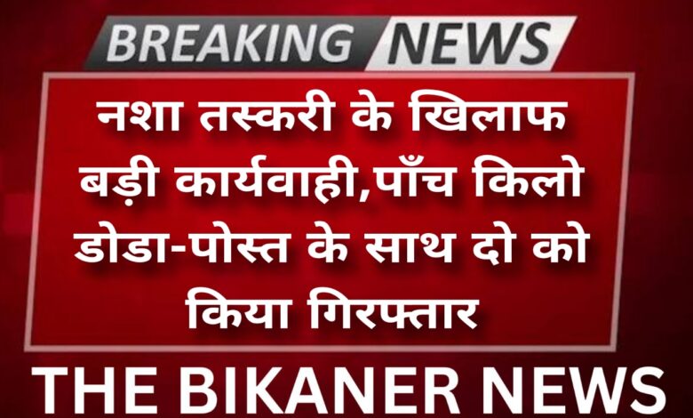 Bikaner:-नशा तस्करी के खिलाफ पुलिस की बड़ी कार्यवाही,पाँच किलो डोडा पोस्त के साथ दो युवकों को किया गिरफ्तार