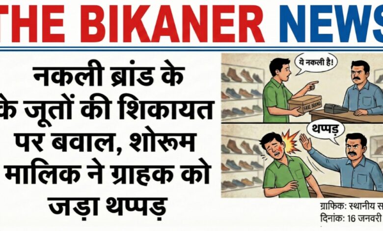 Bikaner:-नकली ब्रांड के जूतों की शिकायत पर बवाल, ‘बाबा शूज’ शोरूम मालिक ने ग्राहक को जड़ा थप्पड़; वीडियो के आधार पर जांच शुरू