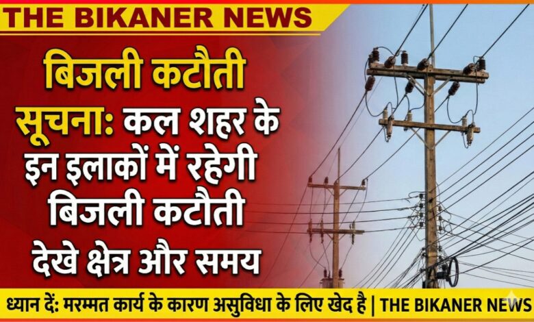 THE BIKANER NEWS:-बीकानेर। बिजली विभाग द्वारा रविवार, 01 फरवरी 2026 को शहर के कई प्रमुख इलाकों में 3 घंटे की बिजली कटौती की घोषणा की गई है।