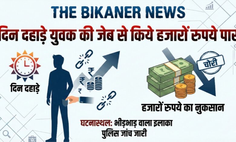 बीकानेर:नयाशहर थाना क्षेत्र में शातिर तरीके से युवक की जेब से पार किए 35 हजार,घटना सीसीटीवी में कैद