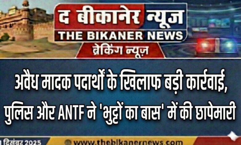बीकानेर: अवैध मादक पदार्थों के खिलाफ बड़ी कार्रवाई, पुलिस और ANTF ने ‘भुट्टों का बास’ में की छापेमारी
