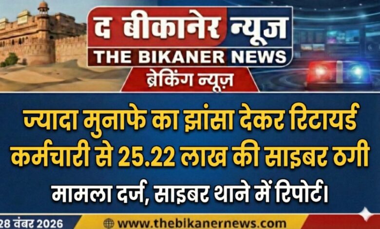 साइबर ठगों द्वारा लोगों को अपनी बातों के जाल में फंसाकर ठगी करने के मामले लगातार बढ़ते जा रहे हैं। ताज़ा मामला बीकानेर के मुरलीधर व्यास कॉलोनी से सामने आया है, जहाँ एक रिटायर्ड कर्मचारी को ऑनलाइन ट्रेडिंग में निवेश कर मोटे मुनाफे का लालच दिया गया और उनसे 25.22 लाख रुपये हड़प लिए गए।