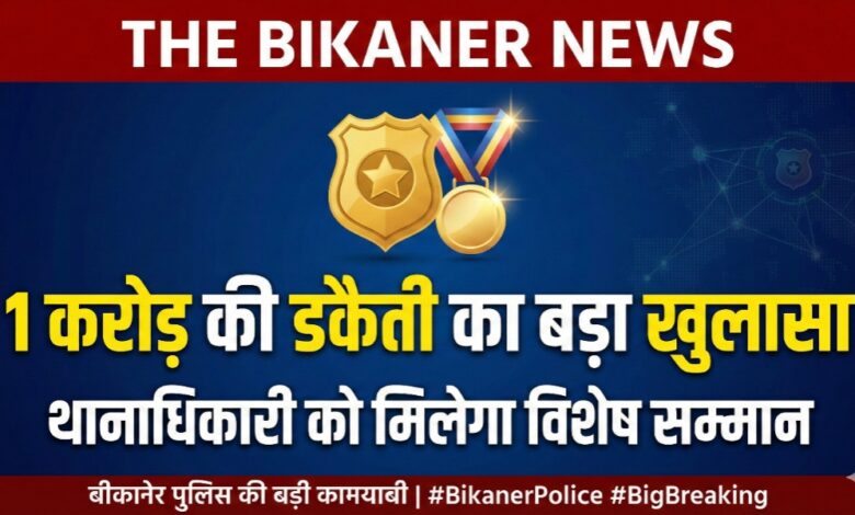 Bikaner:-उत्कृष्ट सेवाओं के लिए थानाधिकारी को मिलेगा सम्मान,एक करोड़ की लूट का किया था खुलासा
