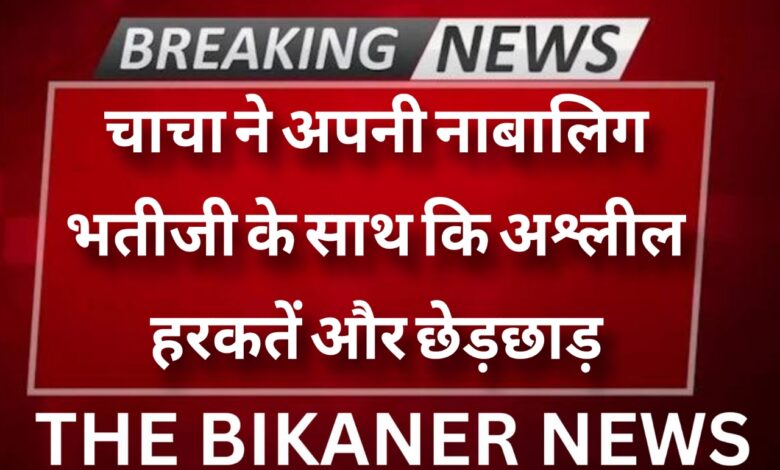 THE BIKANER NEWS:- बीकानेर, बीकानेर में मानवता को शर्मशार और रिस्तो को तार तार करने वाला मामला सामने आया है जहाँ एक चाचा ने अपनी भतीजी के साथ कि छेड़छाड़ और अश्लील हरकतें। मिली जानकारी के अनुसार बीकानेर जिले के नोखा थाना में एक नाबालिग भतीजी ने अपने चाचा पर छेड़छाड़ का मामला दर्ज कराया है। पीड़िता की मां जब असम गई थी, तब लड़की अपनी दादी के साथ नोखा में