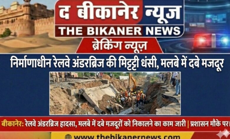 Bikaner:-निर्माणाधीन रेलवे अंडरब्रिज की मिट्टी धंसी,मलबे में दबे मजदूर