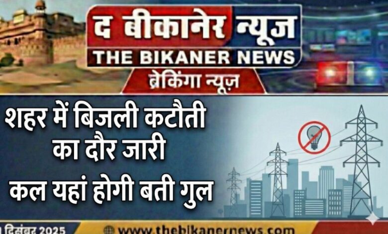 THE BIKANER NEWS:-बीकानेर: जीएसएस और फीडर के आवश्यक रख-रखाव (मेंन्टेनेंस) के चलते कल गुरुवार, 04 दिसंबर को शहर के कई इलाकों में बिजली आपूर्ति बाधित रहेगी।