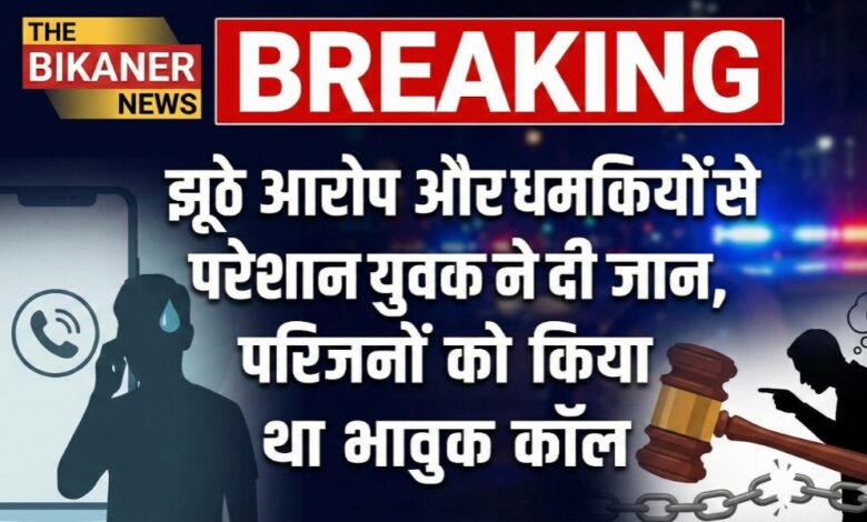 THE BIKANER NEWS:-बीकानेर से एक बेहद दर्दनाक खबर सामने आई है। जहा झूठे इल्जाम और धमकियों से आहत होकर एक युवक ने आत्महत्या कर ली। मरने से पहले युवक ने अपने परिजनों को फोन कर अपनी पीड़ा बताई थी।
