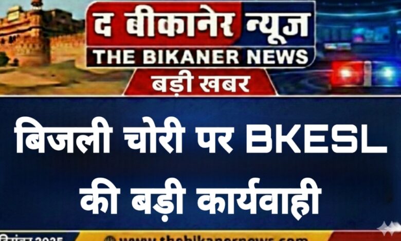 Bikaner:- शहर पुलिस के सहयोग से बीकेईएसएल की बड़ी कार्रवाई,इस क्षेत्र में 10 लाख की बिजली चोरी रोकी