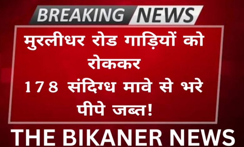 THE BIKANER NEWS:-बीकानेर, दिवाली से त्यौहार से पहले स्वास्थ्य विभाग की बड़ी कार्रवाईसे मचा हड़कंप, नयाशहर थाना क्षेत्र में मावे के पिपो से भरी गाड़ी रोककर की कार्यवाही। मौके पर मचा हड़कंप, जिला कलेक्टर नम्रता वृष्णी के निर्देशो पर मुखबिर से मिली सूचना के आधार पर फलोदी से आई मावे की गाड़ियों को परशुराम द्वार, मुरलीधर व्यास कॉलोनी पर रोक कर 178 पीपा संदिग्ध मावा पकड़ा