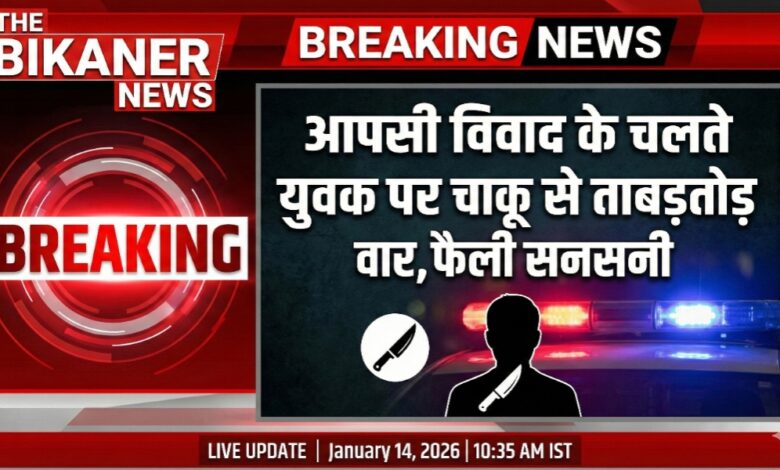 THE BIKANER NEWS:-बीकानेर। शहर के तिलक नगर क्षेत्र में आपसी रंजिश के चलते एक युवक पर जानलेवा हमले की बड़ी खबर सामने आई है। दो हमलावरों ने एक युवक पर चाकू से ताबड़तोड़ वार कर उसे बुरी तरह घायल कर दिया।
