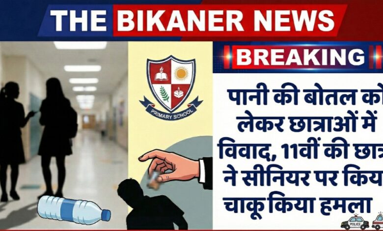 THE BIKANER NEWS:- बीकानेर:-शिक्षा के मंदिर से एक चौंकाने वाली घटना सामने आई है,जिसने सबको सन्न कर दिया है। स्कूल में पानी की बोतल को लेकर हुए मामूली विवाद में 11वीं कक्षा की एक छात्रा ने अपनी ही स्कूल की 12वीं कक्षा की सीनियर छात्रा पर चाकू से हमला कर दिया।