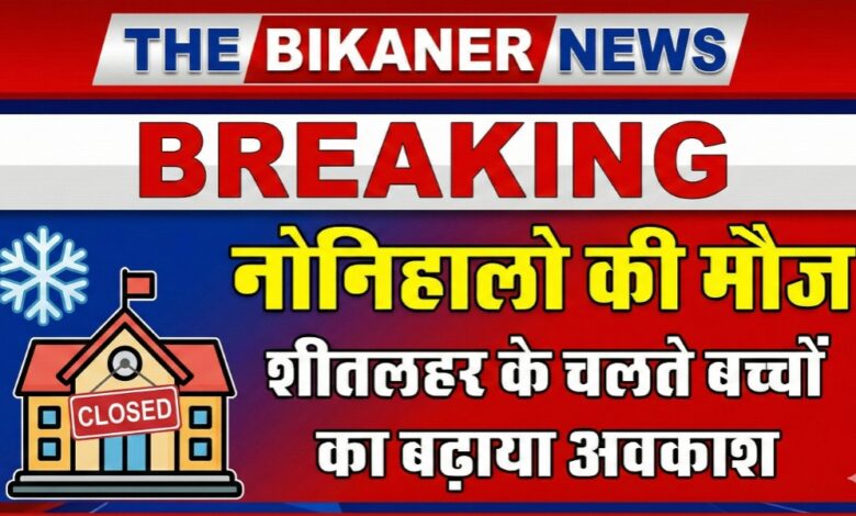 THE BIKANER NEWS:-​बीकानेर। प्रदेश में जारी तेज सर्दी और शीतलहर के प्रकोप को देखते हुए जिला कलक्टर नम्रता वृष्णि ने बड़ा फैसला लिया है। कलक्टर ने आदेश जारी करते हुए जिले के आंगनबाड़ी केंद्रों पर आने वाले 3 से 6 वर्ष आयु वर्ग के बच्चों के लिए अवकाश घोषित कर दिया है।