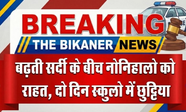 Breaking:-बीकानेर संभाग के इस जिले में भीषण सर्दी और शीतलहर को देखते हुए इन विद्यार्थियों के लिए 16, 17 जनवरी को रहेगा स्कुलो में अवकाश