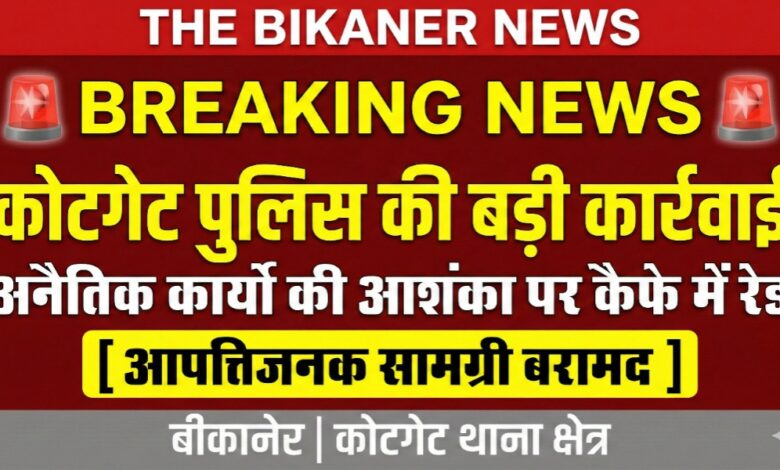 THE BIKANER NEWS:-बीकानेर पुलिस ने शहर में चल रही अनैतिक गतिविधियों के खिलाफ सख्त रुख अपनाते हुए आज एक बड़ी कार्रवाई को अंजाम दिया है। कोटगेट थाना पुलिस ने गुप्त सूचना के आधार पर कार्रवाई करते हुए शहर स्थित “वेल टाइम कैफे” (Well Time Cafe) पर छापेमारी की है।
