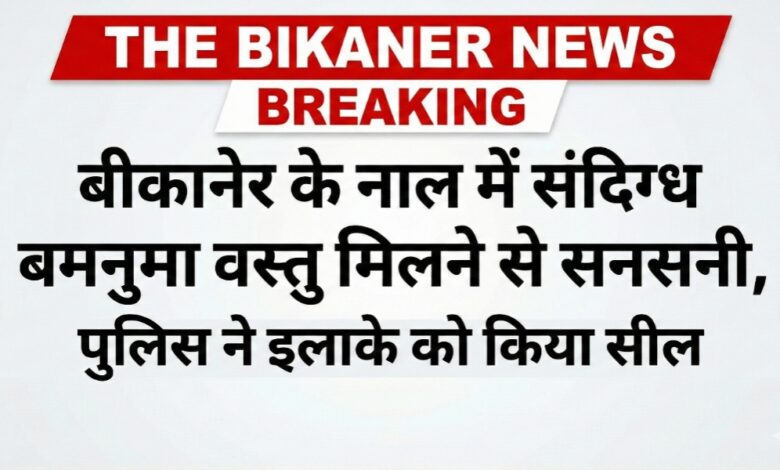 THE BIKANER NEWS:-बीकानेर। जिले के नाल थाना क्षेत्र से इस वक्त की बड़ी खबर सामने आ रही है। नाल क्षेत्र में एक संदिग्ध बमनुमा वस्तु मिलने से इलाके में हड़कंप मच गया है। स्थानीय लोगों की सतर्कता और पुलिस की त्वरित कार्रवाई से फिलहाल स्थिति नियंत्रण में है।