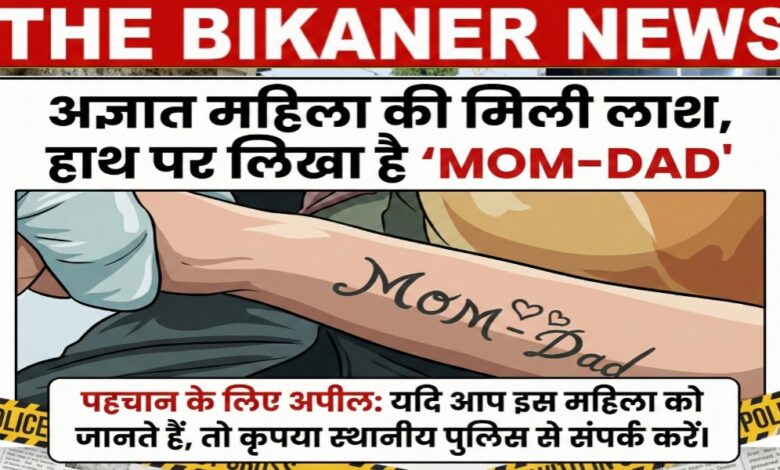 Breaking-बीकानेर में मिली अज्ञात महिला की लाश, हाथ पर गुदा है ‘मॉम-डैड’ का टैटू; पहचान के लिए पुलिस ने जारी किए नंबर