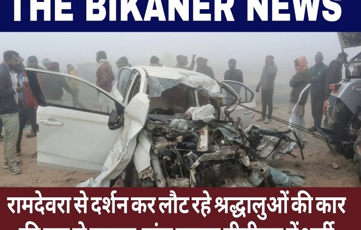 बीकानेर। जिले के लूणकरणसर थाना क्षेत्र में गुरुवार सुबह राष्ट्रीय राजमार्ग–62 पर किस्तूरिया गांव के पास घने कोहरे के कारण एक बड़ा सड़क हादसा हो गया। कम दृश्यता के चलते बस और कार के बीच जोरदार टक्कर हो गई, जिसमें कार सवार पांच श्रद्धालु घायल हो गए। इनमें से दो की हालत गंभीर बताई जा रही है।