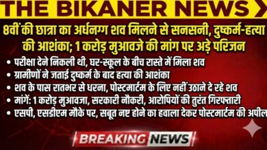 THE BIKANER NEWS:-बीकानेर: 8वीं की छात्रा का अर्धनग्न शव मिलने से सनसनी, दुष्कर्म-हत्या की आशंका; 1 करोड़ मुआवजे की मांग…