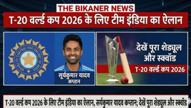 THE BIKANER NEWS:;मुंबई:BCCI ने टी-20 वर्ल्ड कप 2026 के लिए भारतीय टीम की घोषणा कर दी है। शनिवार को मुंबई…