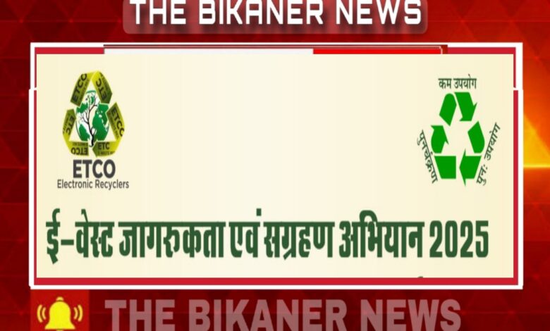 ई वेस्ट जागरूकता एवं संग्रहण अभियान 30 जून से 2 जुलाई 2025 तकक्षेत्रीय प्रदूषण कार्यालय और बीकानेर जिला उद्योग संघ को बनाया संग्रहण स्थल