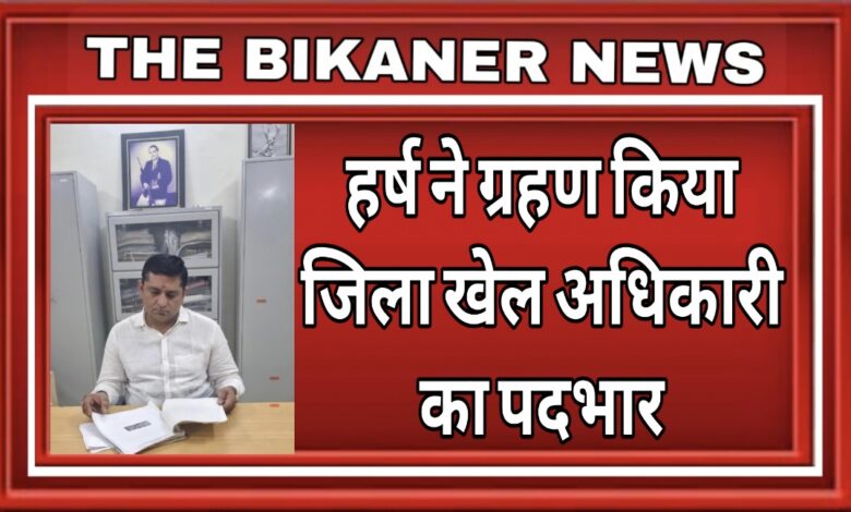 बीकानेर। जिले में खेल गतिविधियों को नई गति देने की दिशा में बड़ा कदम उठाते हुए शारीरिक शिक्षक सुरेन्द्र हर्ष ने जिला खेल अधिकारी के रूप में पदभार ग्रहण किया। गुरुवार को करणीसिंह स्टेडियम स्थित कार्यालय में उन्होंने औपचारिक रूप से कार्यभार संभाला।