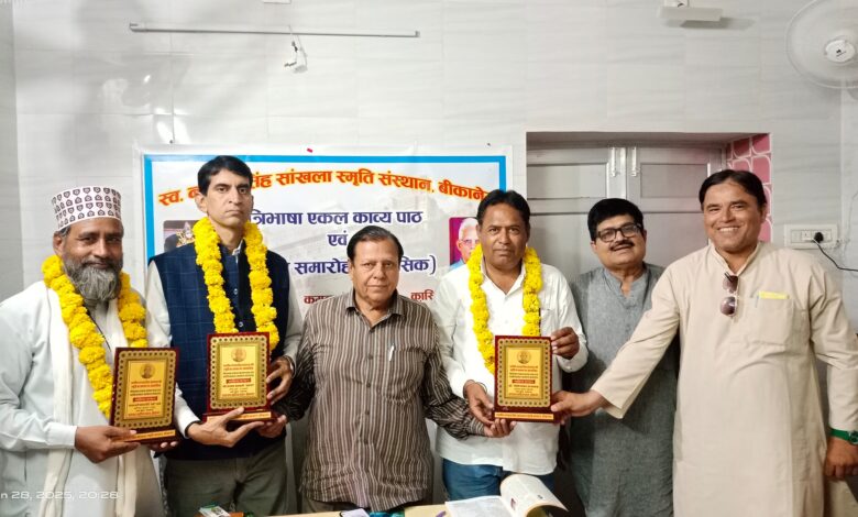 हिंदी उर्दू और राजस्थानी भाषा के कवियों ने अपनी रचनाओं से लूटी महफ़िल की वाहवाही,संस्था ने दिया सम्मान