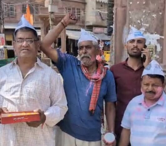 बीकानेर में AAP कार्यकर्ताओं ने मनाया जश्न, कोर्ट गेट पर आतिशबाजी और मिठाई बांटी