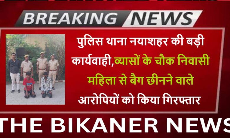 पुलिस थाना नयाशहर की बड़ी कार्यवाही,व्यासों के चौक निवासी महिला से बैग छीनने वाले आरोपियों को किया गिरफ्तार