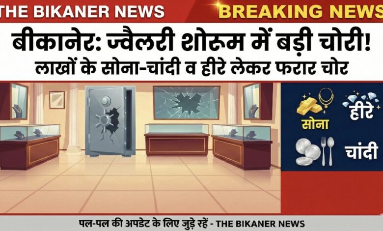 बीकानेर में ज्वैलरी शोरूम पर बड़ी चोरी, लाखों के सोना-चांदी व हीरे लेकर फरार चोर