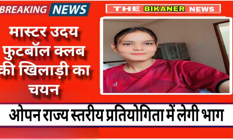 मास्टर उदय क्लब फुटबॉल खिलाड़ी रवीना का राज्य स्तरीय प्रतियोगिता में चयन