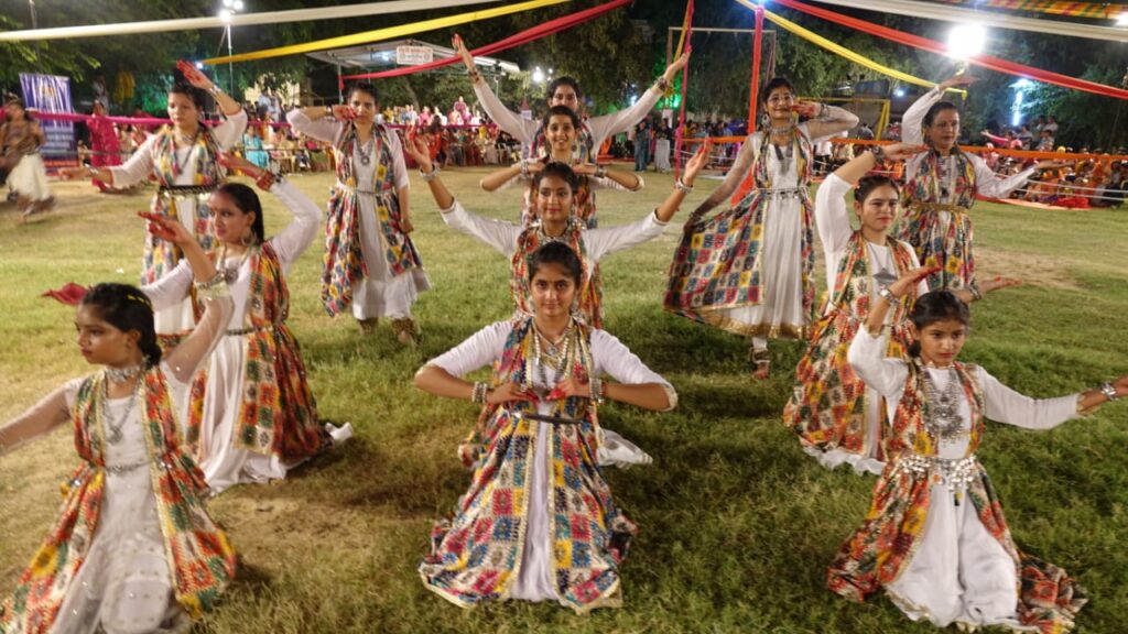 बीकानेर जय नारायण व्यास कॉलोनी सेक्टर 4 स्थित वृंदावन पार्क , मे आयोजित सांस्कृतिक संध्या में रंग बिरंगी वेश भूषा से सजे डांडिया और गरबा नृत्य प्रेमियों ने संगीत की विभिन्न धुनों पर जम कर लुफ्त उठाया और डांडिया रास किया।