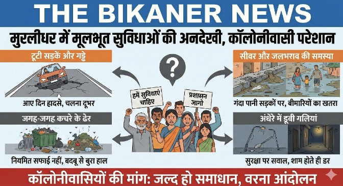 बीकानेर। शहर में बुनियादी समस्याओं को लेकर नागरिकों की परेशानी लगातार बढ़ती जा रही है, लेकिन जिम्मेदार विभागों की ओर से ध्यान नहीं दिया जा रहा। ताजा मामला मुरलीधर व्यास कॉलोनी सेक्टर 2-एफ का सामने आया है, जहां स्थानीय लोग लंबे समय से गंदगी, टूटी सड़कों और जर्जर पार्क जैसी समस्याओं से जूझ रहे हैं।