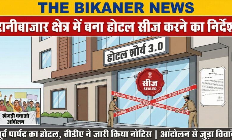 THE BIKANER NEWS:-बीकानेर | खेजड़ी बचाओ आंदोलन का नेतृत्व कर रहे पूर्व पार्षद मनोज बिश्नोई और प्रशासन के बीच टकराव बढ़ता जा रहा है। बीकानेर विकास प्राधिकरण (बीडीए) ने अब आंदोलनकारी मनोज बिश्नोई के रानी बाजार स्थित ‘होटल शौर्य 3.0’ को सीज करने की तैयारी कर ली है। बीडीए ने होटल संचालक को नोटिस जारी कर दस्तावेजों की मांग की है।