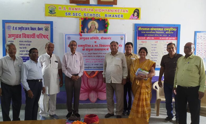 सुरजाराम पुरोहित उपाध्यक्ष अणुव्रत समिति बीकानेर ने अपने उद्बोधन में विद्यार्थियों को अणुव्रत आचार संहिता का पालन करने का संदेश देते हुए आज के इस भव्य आयोजन के लिए अणुव्रत समिति एंव शाला प्रधानाचार्या का आभार व्यक्त किया।