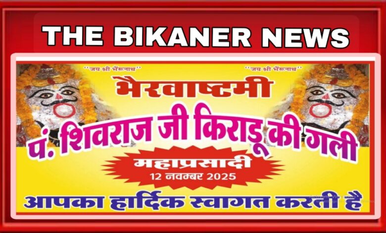 THE BIKANER NEWS:рдмреАрдХрд╛рдиреЗрд░ред рднреИрд░рд╡ рдЕрд╖реНрдЯрдореА рдХреЗ рдкрд╛рд╡рди рдЕрд╡рд╕рд░ рдкрд░ рдмреБрдзрд╡рд╛рд░, 12 рдирд╡рдореНрдмрд░ рдХреЛ рд╢рд╣рд░рднрд░ рдореЗрдВ рд╢реНрд░рджреНрдзрд╛ рдФрд░ рднрдХреНрддрд┐ рдХрд╛ рдорд╛рд╣реМрд▓ рд░рд╣реЗрдЧрд╛ред рд╡рд┐рднрд┐рдиреНрди рдордВрджрд┐рд░реЛрдВ рдореЗрдВ рднреИрд░рд╡рдирд╛рде рдЬреА рдХреА рд╡рд┐рд╢реЗрд╖ рдкреВрдЬрд╛-рдЕрд░реНрдЪрдирд╛, рднрдЬрди рд╕рдВрдзреНрдпрд╛ рдФрд░ рдорд╣рд╛рдкреНрд░рд╕рд╛рджреА рдХрд╛ рдЖрдпреЛрдЬрди рдХрд┐рдпрд╛ рдЬрд╛рдПрдЧрд╛ред