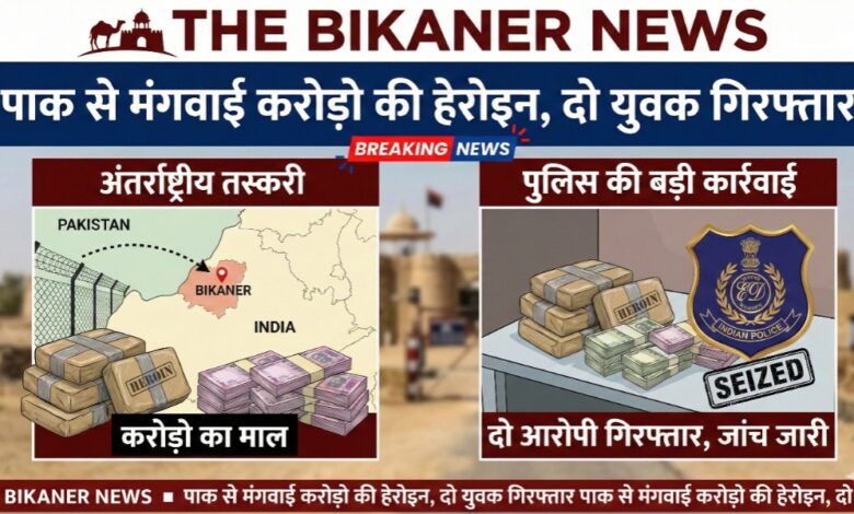 पाक कनेक्शन का भंडाफोड़:,बीकानेर के दो युवको ने पाक से मंगवाई करोड़ो कीमत की हेरोइन,भुट्टों का बास’ इलाके में खपाने की थी तैयारी