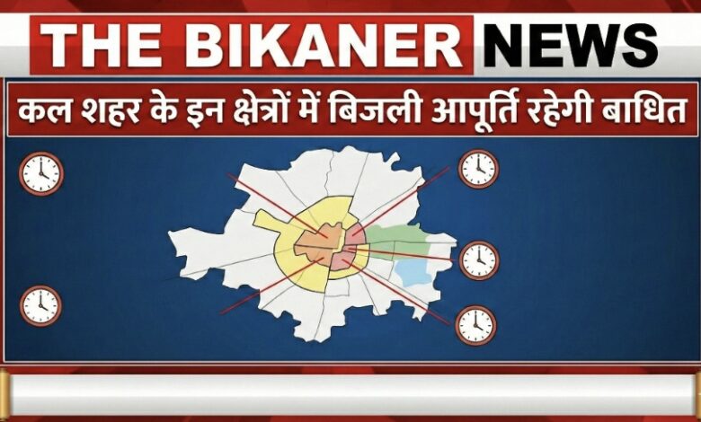 बीकानेर शहर में जीएसएस/फीडर रख-रखाव और पेड़ों की छँटाई जैसे अत्यावश्यक कार्यों के चलते सोमवार, 02 फरवरी को विभिन्न इलाकों में निर्धारित समय पर विद्युत आपूर्ति बाधित रहेगी।