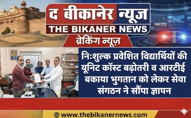 बीकानेर। स्कूल एजुकेशन वेलफेयर एसोसिएशन (सेवा) राजस्थान ने प्रदेशाध्यक्ष कोडाराम भादू के नेतृत्व में निःशुल्क प्रवेशित विद्यार्थियों को दी जाने वाली यूनिट कॉस्ट में वृद्धि, वर्ष 2014 से वर्तमान सत्र तक लंबित आरटीई भुगतान, पूर्व प्राथमिक कक्षाओं में प्रवेशित विद्यार्थियों का पुनर्भरण तथा वर्तमान सत्र का भुगतान टाइम फेम के अनुसार करने की मांग को लेकर प्रदेशभर में ज्ञापन सौंपे।