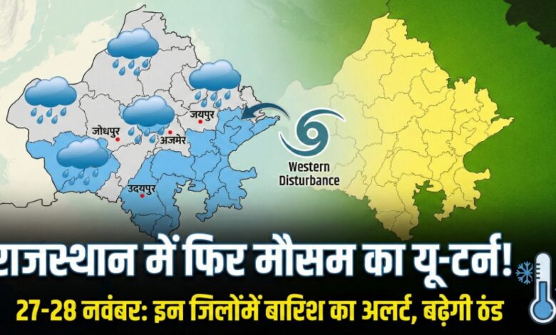 राजस्थान में फिर बदलेगा मौसम का मिजाज,आगामी कुछ घँटे में इन जिलों में बारिश का अलर्ट, बढ़ेगी ठिठुरन!