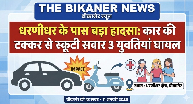 दुर्घटना में श्रीरामसर निवासी सीमा, ध्रुवा और शिवी के घायल होने की सूचना है।