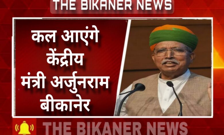 शनिवार को आएंगे केंद्रीय मंत्री श्री अर्जुन राम मेघवाल,करेंगे विभिन्न विकास कार्य का शिलान्यास एवं लोकार्पण