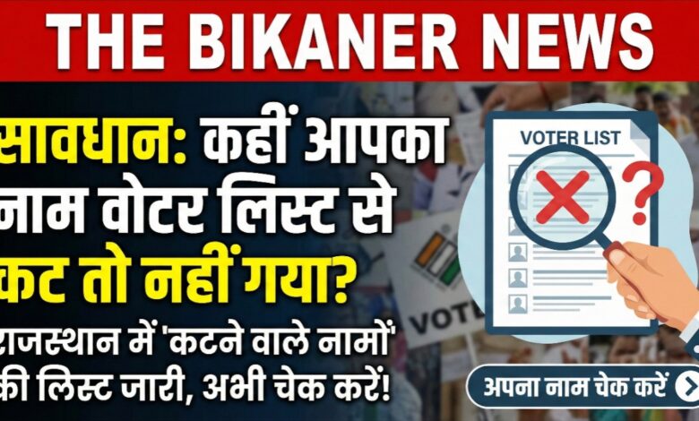 बीकानेर/जयपुर:,राजस्थान निर्वाचन विभाग ने वोटर लिस्ट के विशेष गहन पुनरीक्षण (SIR) अभियान के तहत एक अहम लिस्ट जारी की है। अगर आप एक जागरूक मतदाता हैं, तो यह खबर आपके लिए बेहद जरूरी है। विभाग ने उन वोटर्स की सूची सार्वजनिक कर दी है, जिनके नाम मतदाता सूची (Voter List) से काटे जा रहे हैं।