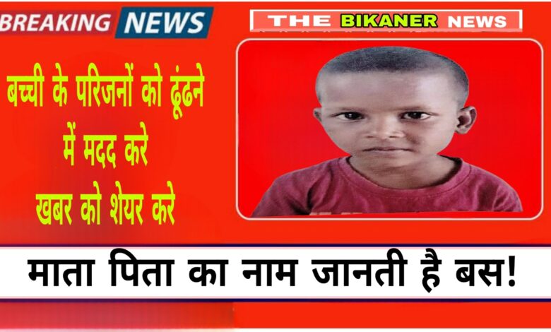 THE BIKANER NEWS:;-बीकानेर, 14 जुलाई। खबर को सभी व्हाट्सएप्प ग्रुप में शेयर करे आपके प्रयास से इस बच्ची को अपने माता पिता से मिल सकते है,